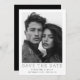 Faça uma impressão duradoura com o nosso convite moderno para salvar a data, projetado para casais que apreciam elegância contemporânea. Com uma foto personalizada como ponto focal, esse convite combina uma estética limpa e minimalista com uma tipografia simples, mas sofisticada. A paleta clássica de cores preto e branco melhora a sensação do eterno, embora possa ser facilmente personalizada para corresponder às suas cores pessoais de casamento. No verso, inclua texto personalizado para um toque pessoal adicionado, fazer cada convite exclusivamente seu. Perfeito para casais que buscam um design moderno e subestimado que transmita sem esforço estilo e simplicidade.
