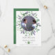 Cartão de anúncio de nascimento de bebê em forma quadrada com dólar de prata verde folha e lavanda projetado para ser rapidamente e facilmente personalizado para os detalhes do seu evento.