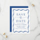 Anuncie seu próximo casamento em estilo com nossa foto do Modern Wavy Frame, salve as datas! O design apresenta seus nomes e detalhes de casamento enquadrados por um quadro de onda azul contrastando com um fundo de creme leve. Na parte de trás do retrato, salve a data, a sua foto de noivado vertical com o seu site de casamento mostrado abaixo. Esta mistura requintada de design moderna e retrô garante que você salve a data não é apenas um lembrete de sua próxima celebração, mas um manto apreciado que captura a essência de sua história de amor.
