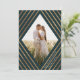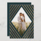 Esse belo casamento Salve a data nos convites com na moda faux douroula stripes, criando um quadro em forma de diamante geométrico ao redor da sua foto. A cor de fundo é verde escura esmeralda. Um modelo de texto é incluído no verso para mais personalização - certifique-se de personalizá-lo com a cidade e o estado!