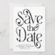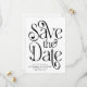 Elegante, tipografia Foto de casamento, salve o cartão de data. Design apresenta um script de tipografia em letras negras clássicas em fundo branco ''salvar a data'', nomes, data e local do casamento na frente. Personalize ainda mais com sua foto em uma imagem arredondada e adicione o site de casamento.