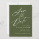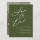 Elegante salve a data com "Salvar a Data" exibida em um script de caligrafia branca com um fundo verde-oliva. Personalize a caligrafia, salve a data com seus nomes, data e local do casamento e site do casamento. Adicione a sua foto de noivado vertical e com sangramento de cheio à parte traseira da placa. A foto salvou a design de data com nossa coleção de casamento Elegante Calliografia.