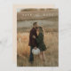 Um casamento moderno e elegante, bronzeado salve a data, projetado com letras de guião. Personalize com sua própria foto de noivado, e detalhes futuros do casamento na frente e atrás.