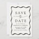 Anuncie seu próximo casamento em estilo com nossa foto do Modern Wavy Frame, salve as datas! O design apresenta seus nomes e detalhes de casamento enquadrados por uma estrutura de onda preta contrastando com um fundo de creme leve. Na parte de trás do retrato, salve a data, a sua foto de noivado vertical com o seu site de casamento mostrado abaixo. Esta mistura requintada de design moderna e retrô garante que você salve a data não é apenas um lembrete de sua próxima celebração, mas um manto apreciado que captura a essência de sua história de amor.