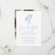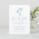 Ponha o tom para sua celebração tropical com este casamento da palmeira, salve o cartão de data. Apresentando palmeiras azuis desenhadas à mão no topo e um fundo branco nítido, esta design de inspiração litorânea é perfeita para casamentos de praia ou de destino. "Salvar a data" é escrito em um roteiro azul manuscrito elegante, com espaço abaixo para personalizar seus nomes, data do casamento e local. A parte de trás do cartão mostra uma foto vertical do noivado e o site do seu casamento para um fácil acesso de hóspedes — uma na moda para cerimônias à beira-mar, núpcias insulares ou comemorações de verão.