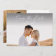 Casamento de Foto de Script Moderno Salve o cartão Data. O verso contém uma segunda foto com detalhes adicionais. Clique no botão editar para personalizar este design com suas fotos e detalhes do casamento.