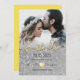 Simples, elegante, moderno amarelo-chic e cinza Casamento Salve o convite da data com foto e brilho prateado.