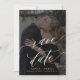 Um casamento preto moderno e romântico com o moody Chic salve a modelo da data com a sua foto personalizada em trendy faux vellum obscuro com um roteiro de caligrafia branco com letras brancas. ++++++++++ Fácil de personalizar com seus detalhes e imagem de noivado em ambos os lados! +++++++++ Adequado para qualquer tema de casamento elegante de estação.