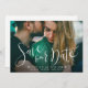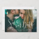 Moderno salve o script de data em cores brancas editáveis, com fotos de casal, simples e elegantes. cartões salve a data de excelente para casamento vintage, casamento formal e outros eventos. Selecione "Clique para personalizar mais" na seção "Personalizar este modelo" para ajustar a posição e o tamanho da sua foto.