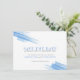 Foto de casamento simples moderna, salve o cartão. Perfeito para um simples casamento azul e branco. Edite esta opção para salvar o cartão de data com seus próprios nomes e data de casamento em um lado e sua própria foto no sentido inverso. Outros itens correspondentes e opções de cor estão disponíveis. Tiras de arte modernas originais e design por Sarah Trett para www.mylittleedenweddings.com