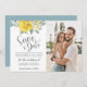 Este casamento floral moderno Salve a data apresenta um buquê elegante e elegante de rosas amarelos, complementado com um verde delicado e acentuado com folhas de ouro (ouro falso) sobre um fundo branco plano no lado esquerdo, enquanto o lado direito é personalizável com uma das suas fotos favoritas de noivado. A parte traseira da placa apresenta uma cor azul sólida de coordenação empoeirada. Este cartão Salvar a data faz parte da coleção "Casamento de rosas de aquarela amarela", com itens correspondentes para criar um pacote de casamento exclusivo. Por favor, entre em contato comigo em acherryonthecake@hotmail.com para obter mais personalização, mudanças de cor ou quaisquer outros itens de coordenação (aguarde 1 a 2 dias úteis).