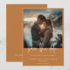 Este casamento salve a design do cartão de encontro com um fundo laranja enferrujado e queimado e é a canvas perfeita para sua foto de casal favorita. Os detalhes simples aparecem em texto branco. A parte traseira apresenta os primeiros nomes do casal. Único e elegante, este design pode ser usado em qualquer estação. Criado pela imprensa simplesmente de farmácia.