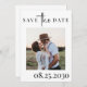Um roteiro minimalista de tipografia de chic em preto e branco salve o cartão de data com fotos, texto e código de digitalização personalizados no site. ++++++++++ Adequado para um casamento russo moderno em qualquer época.