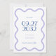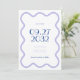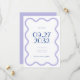 Este casamento salvar o cartão de data é uma borda ondulada. Ele usa cores calmas como lavanda inspirada em campos de lavanda. As fontes divertidas e na moda adicionam um toque de elegância, e as palavras no centro são destacadas em azul brilhante para um pop divertido de cor e usam um tamanho de fonte maior.