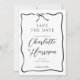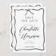 Um simples casamento de tipografia moderna e minimalista, escrita à mão, salva o anúncio da data, enquadrado com uma fita ondulada com arco em estilo desenhado à mão. Estilo informal de coquete branco. Disponível em impressão, como download digital ou ambos.