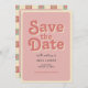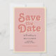 Este ousado cartão de casamento "salve a data" abraça um tema de groovy 70s. A frente apresenta um coral cor-de-rosa vintage com letras retrorreflectoras, e a parte traseira tem espaço para você adicionar uma foto, com uma borda com florais vibrantes e um padrão retrorreflector. Este simples design é perfeito para casais que amam o encanto da vintagem com uma reviravolta moderna. Ideal para casamentos de verão, inspirados no retrorreflector, este cartão captura uma estética divertida e livre. Explore itens correspondentes na nossa suíte de casamento para completar a aparência!