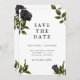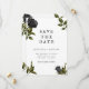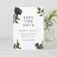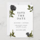 Guarde gótica a placa de data com ilustração de rosas pretos em fundo branco. Perfeito para um casamento na época das bruxas.