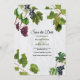 Um belo design com uvas rupestres e folhas de vinhedo no estilo mediterrânico, uma parede branca de lavagem da ilha grega. Uma elegante videira de casamento vintage salva o cartão perfeito para casamentos do estilo ilha grega, italiano e mediterrânico. O reverso do cartão mostra um monograma minimalista. Os convites de casamento e outros artigos de papelaria também estão disponíveis.