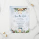 O amor derrete os corações na geada do inverno. É hora de celebrar o tema do seu casamento de conto de fadas de inverno. Design de inverno aquarela aconchegante com fonte de caligrafia moderna, grinalda de pinheiro e azevinho com laço, vela acesa em fundo de neve congelada. O texto pode ser facilmente personalizado para um design único e especial para o seu dia.