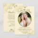 Estas belas cartas são uma forma excelente de deixar seus amigos e família saberem salvar a data do seu próximo casamento. Eles apresentam um creme de marfim ou um design de ouro e esbranquiçado com sua foto em um quadro em forma oval cercado por fritos de folha de alumínio de ouro e letras de rico com seus nomes, data de casamento e local. O verso tem um gráfico bonito de "lápis nós in" com espaço para uma nota que pode incluir um site onde seus convidados podem obter mais informações.