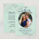 Estas belas cartas são uma forma excelente de deixar seus amigos e família saberem salvar a data do seu próximo casamento. Eles apresentam um design verde-menta e azul-marinho com sua foto em um quadro em forma oval cercado por colchões de rendas de cinza prateada e letras de rico com seus nomes, data do casamento e local. O verso tem um gráfico bonito de "lápis nós in" com espaço para uma nota que pode incluir um site onde seus convidados podem obter mais informações.