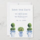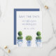 Marque seus calendários para um casamento para se lembrar! Este elegante "Salve a Data" traz sotaques adoráveis com limões vibrantes, evocando o romance de um jardim beijado ao sol. Os topiários elegantes em belos vasos azuis de ornamentado em cada lado adicionam um toque de sofisticação e charme europeu. Com uma tipografia refinada melhorando a design, esta carta dá o tom para uma celebração cheia de amor, elegância e beleza eterno.