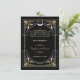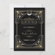 Glamouroso, design romântico Art Déco de grande estilo. Apresenta estilo Art Déco com sobreposição de folha de ouro falso, ornamentos e divisor, fontes vintage deslumbrantes; no verso: padrão Art Déco em ouro sobre fundo preto. Use a ferramenta Personalizar para adicionar suas informações. Para itens correspondentes, visite minha Coleção Stylish Art Déco dos Anos 20.