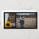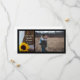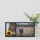 Ponha o tom para a cerimônia de casamento do próximo rancho com o encantador casamento entre o Girassol Amarelo e Madeira do Barn Salve o Cartão com fotos de Data. Este casamento em estilo de fazenda quic chic no país mantém a data em que o cartões de fotos de anúncio apresenta uma fotografia floral, pintada digitalmente, de uma flor de girassol amarela com um véu branco e um fundo de madeira castanha. Inpo perfeito ou ideia para um evento casual de festa de celeiro. Disponível como um convite impresso para envio por correio ou como um download digital para fácil compartilhamento digital online.