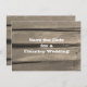 Defina o tom para seus próximos núpcias com o Casamento informal e relaxado da Madeira do Barão do País Salve o Anúncio de Data. Este encantador casamento de tema rural personalizado mantém o cartão com uma fotografia de fazenda fechada de madeira de celeiro rústica e salgada com tom de sépia adicionado. Inpo perfeito para uma cerimônia de casamento casual e evento de recepção.