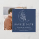 Convide amigos e família para salvar sua data de casamento com esta Lua Botânica Elegante e Estrelas salvem a data. O quadrado save the date card apresenta uma ilustração de uma lua feita em uma linha branca, adornada com estrelas cintilantes e uma folhagem botânica exuberante, todas colocadas sobre um fundo de marinho. A design é aprimorada com sutil caligrafia moderna, acrescentando um toque de sofisticação e talento contemporâneo. O convite reverte para mostrar sua foto de noivado quadrado sangrado de cheio.