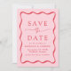 Anuncie seu próximo casamento em estilo com nosso casamento do Modern Wavy Frame, salve as datas! O design apresenta seus nomes e detalhes de casamento enquadrados por um quadro vermelho ondulado em contraste com um fundo rosa. Esta mistura requintada de design moderna e retrô garante que você salve a data não é apenas um lembrete de sua próxima celebração, mas um manto apreciado que captura a essência de sua história de amor.