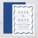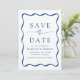 Anuncie seu próximo casamento em estilo com nosso casamento do Modern Wavy Frame, salve as datas! O design apresenta seus nomes e detalhes de casamento enquadrados por um quadro de onda azul em contraste com um fundo branco. Esta mistura requintada de design moderna e retrô garante que você salve a data não é apenas um lembrete de sua próxima celebração, mas um manto apreciado que captura a essência de sua história de amor.