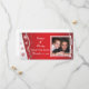 Cinza vermelha, prateada, casamento no inverno branco com floco de neve Salve o cartão com fotos de Data, apresentando uma banda ondulada em cinzas prateadas com estrelas e flocos de neve elegantes vermelhos sobre fundo vermelho gradiente brilhante. Moderno e contemporâneo, mas adequado para um casamento tradicional. Essa elegante, elegante e na moda pode ser usada em outras ocasiões especiais, como noivados ou aniversários. Uma escolha perfeita para o inverno, dezembro ou casamentos de Natal.