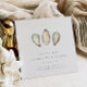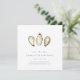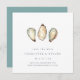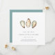 Anuncie seu próximo casamento com esses elegantes cartões salve a data costeiros, apresentando um trio de conchas de ostras aquáticas em tons macios de creme e aqua. Personalize com seus nomes, data, local e site de casamento embaixo do bloco clássico e da letra itálica. Recomendamos o estilo de papel Laid com este design para uma aparência elevada.