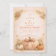 Aconchegante, romântico e sazonal, este design de casamento de outono apresenta uma rica abóbora antiga cercada por flores suaves e folhagem delicada de outono. Um arco botânico gracioso emoldura a redação, criando uma composição equilibrada e elegante com charme rústico sutil. O fundo neutro quente e os acentos de laranja queimada tornam-no perfeito para uma celebração ao ar livre de outono, casamento em celeiro ou evento inspirado na colheita.