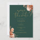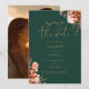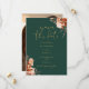 Este convite de save the date floral rústico de outono elegante pode ser personalizado com suas informações em tipografia dourada sofisticada em um fundo verde esmeralda e foto no verso. Criado por Thisisnotme©