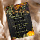 Na moda de casamento outono elegante russo para guardar a data modelo no fundo de madeira castanho-escura com buquês botânicos laranja arruinados com abóbora, folhagem e folhas secas. ++++++++++ Fácil de personalizar com seus detalhes! O convite é adequado para o final elegante do Verão ou outono, casamentos de jardins florais no interior do campo rústico no exterior.