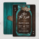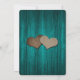 Cartão de aviso de casamento azul turquesa rústico com uma jarra de pedra e corações de aniagem contra um fundo de madeira de celeiro adornado com luzes cintilantes. Personalize facilmente este cartão de aviso de casamento romântico e rústico online. Itens correspondentes disponíveis para complementar este cartão de aviso de casamento azul turquesa.