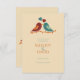 Anuncie seu grande dia em estilo com este charmoso amor pássaros salvem o cartão de data. Apresentando uma simples ilustração de dois pássaros virados um para o outro, um em tons legal e o outro em quente, todos colocados contra um fundo de creme mole. Esta design capta perfeitamente a harmonia de duas almas, oferecendo uma introdução divertida, mas elegante, à sua celebração de casamento. Totalmente personalizável com seus detalhes especiais.