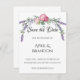 Lavanda e Eucalyptus Wedding Salvem os convites para Data. Um design elegante e vintage com eucalipto e lavanda pintado em cor d'água romântica.