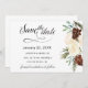 O verde do pinheiro com rosas brancas faz um casamento elegante Salve o cartão do Encontro. A caligrafia aproveita a design para separá-la de forma simples, mas eficaz. É feminina e na moda, com uma paleta editada de branco, cor verde-pino profundo e castanho.