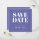 Uma fonte moderna e ousada Salve o design de Data com uma fina imagem brilhante prateada na frente e um coração brilhante prateado na parte de trás. A cor de fundo é a cor de 2022, uma versão de tendência do periwinkle que acompanha tudo. Adicione seus nomes, iniciais e data de casamento ao cartão e envie-o para seus amigos e famílias.