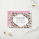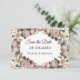 Um convite de casamento sofisticado apresenta uma fronteira floral ao estilo Rococo, que enquadra um espaço central para uma mensagem personalizada e evoca uma sensação de grandiosidade vintage. A fronteira é meticulosamente detalhada com rosas cor-de-rosa pinceladas, lírios creme e rolhas de ouro girando, acentuadas com detalhes de folha de ouro e gotículas delicadas de pérolas, todas colocadas contra um branco nítido e texturizado complementando a estética geral, ao mesmo tempo em que fornece amplo espaço interior para uma mensagem sentida e criando uma manutenção do eterno.