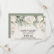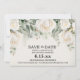 Cartão de Save the Date elegante com rosas brancas em aquarela e folhas verdes de sage. Entre em contato para obter ajuda com suas personalizações ou para solicitar produtos Zazzle adicionais correspondentes ou coordenados.