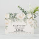 Cartão de Save the Date sem foto de rosas em aquarela brancas elegantes e folhas verdes de salvia. Entre em contato para obter ajuda com suas personalizações ou para solicitar produtos Zazzle adicionais correspondentes ou coordenados.