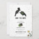 Um design de casamento de Halloween gótico com rosas pretos, corvos e florais. Um design branco de Halloween que usa florais botânicos negros e escuros junto com tipografia de caligrafia vintage. Um na moda coroa gótica design ideal para os temas do casamento de Halloween. Um casamento exclusivo entre rosas negros e corvos salva o cartão de data design. Os convites de casamento e outros artigos de papelaria também estão disponíveis.