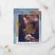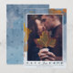 Este é um design de save the date de modelo de foto moderno e único, com espaço para a foto do casal favorito sob um modelo "save the date" único com detalhes de aquarela azul e dourado. Uma ótima maneira de informar sua família e amigos sobre a celebração do seu casamento. Personalize com seus nomes e detalhes do casamento.