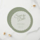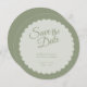 Elegante, porém moderno, e com um toque de retroglama, este Cartão Salve a Data de Casamento apresenta um círculo em forma de escala, verde-sábio e caligrafia elegante. Personalize esta design com suas próprias informações de casamento.