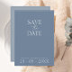 Simples Casamento de Script Azul Salve o Cartão de Data. Anuncie seu dia especial com este casamento de um guião azul empoeirado, salve o cartão. Apresentando uma tipografia elegante sobre um fundo azul macio, ela define um tom refinado e eterno para sua celebração. Perfeito para temas de casamento modernos ou clássicos, e coordena com papelaria correspondente.