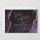 Este casamento elegante salve o cartão de data apresenta uma imagem de fundo da cor d'água púrpura, cortada com uma falso brilho dourado. O texto personalizável combina manuscrito, protetor e fontes itálicas de cor dourada. O verso apresenta uma design de agata roxa e dourada coordenadora.